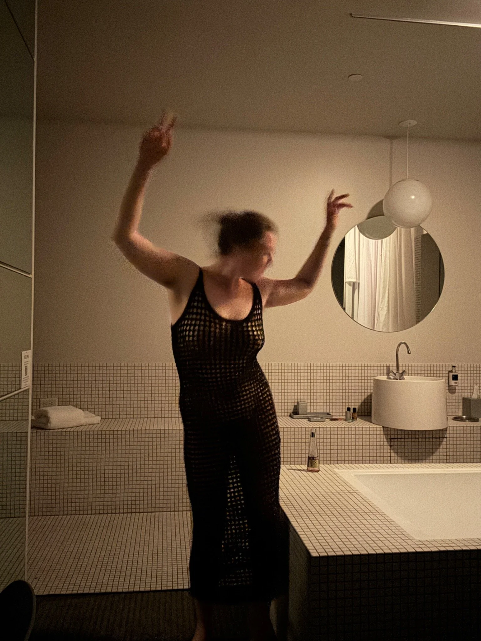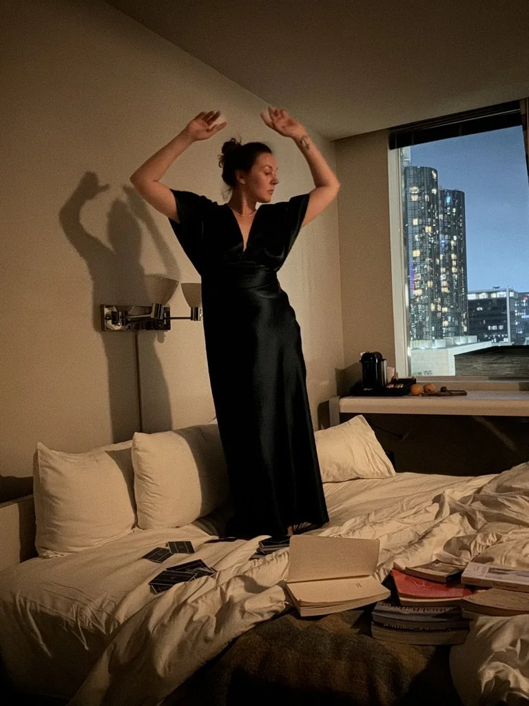I took a bath when the mood struck, (Which, if you know me, was more than once.) I sat with myself and did a loving-kindness practice. I unpacked the many ornate dresses I’d stuffed into my spontaneously overpacked bag, which had elicited a raised eyebrow from my partner. (‘You know it’s just one night, right?’) I played dress-up and took self-portraits lit by the ambient glow of the city. Then some by candlelight, in nothing at all.